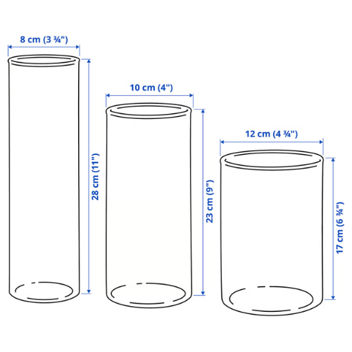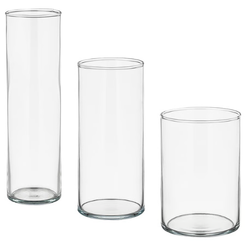 Cylinderne er kun for LED-lys. Vi tilbyr en pakkedeal til 150 kr per sett, der du får tre størrelser med cylindre og matchende LED-kubbelys i krem, rosa eller blå. Les mer her.